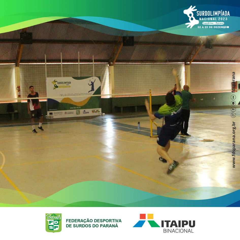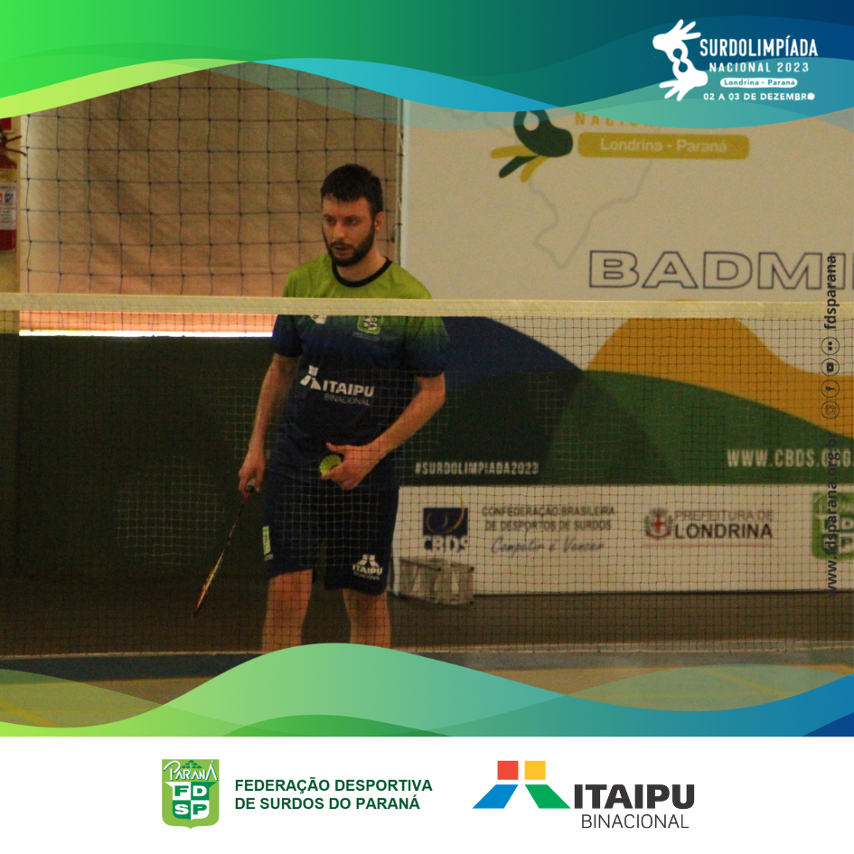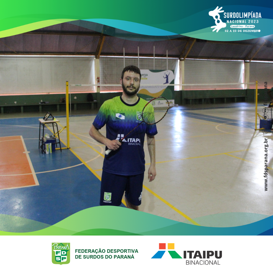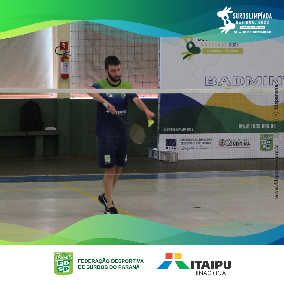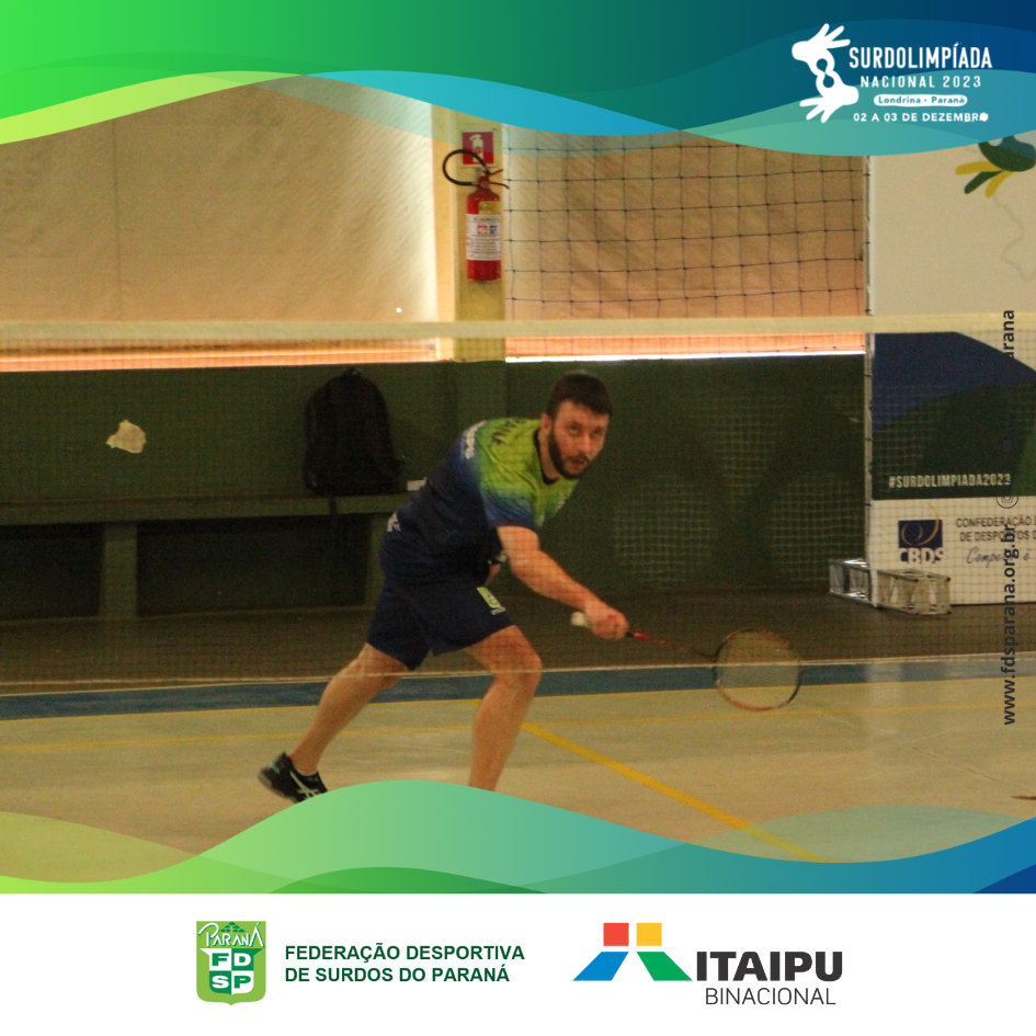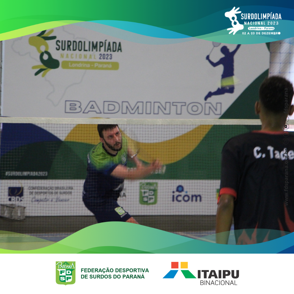 No último sábado, dia 02/12, ocorreu a competição de badminton da Surdolimpíada Nacional 2023 em Londrina/PR. O único representante de badminton do Paraná, Vagner Canton, se empenhou no grupo classificatório e acabou perdendo nas quartas de final para o atleta de São Paulo, que mais tarde se tornou campeão da categoria individual masculina neste evento.