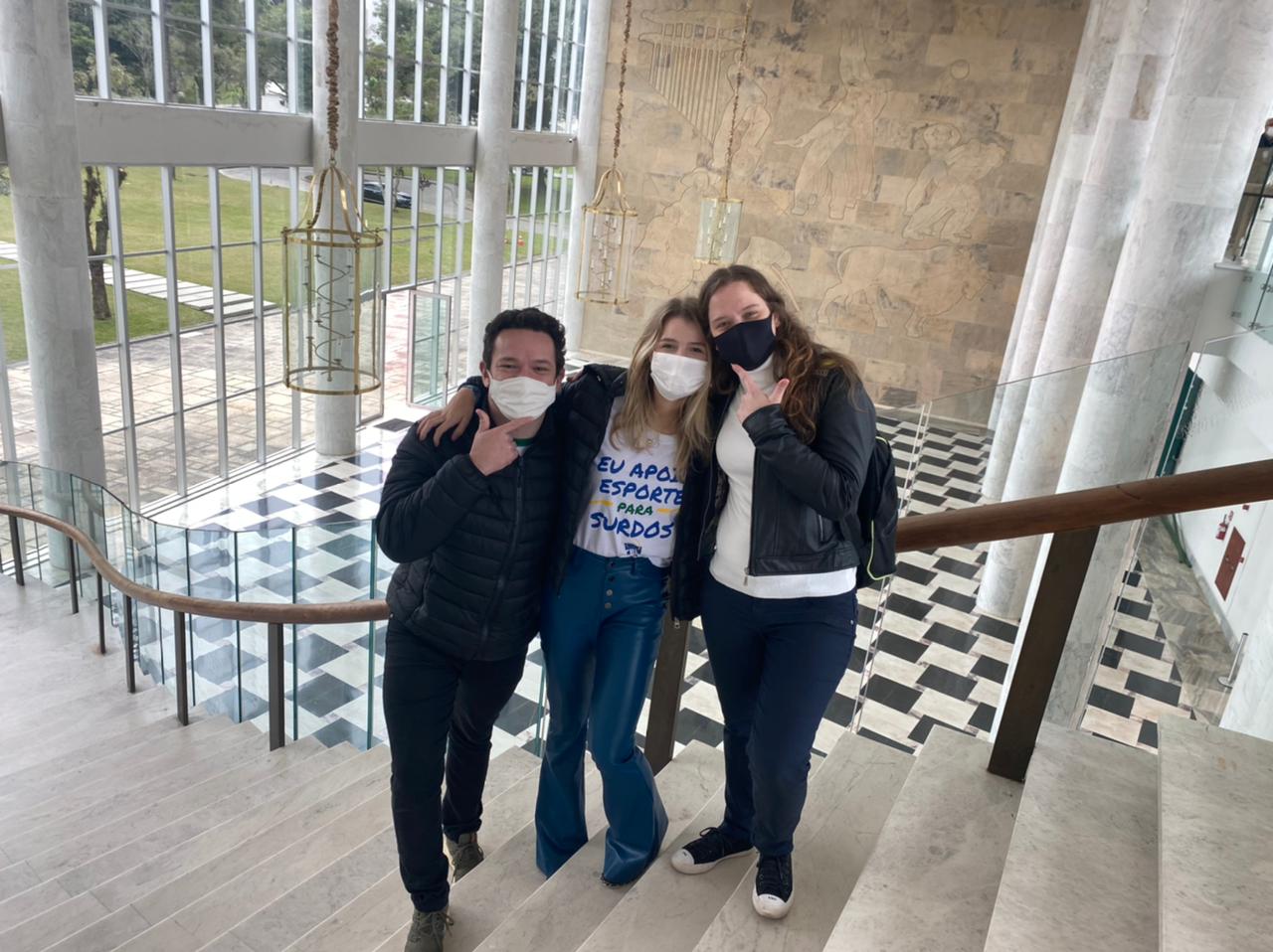 O Presidente da FDSP Prof. Anderson Santana Jr. e a Representante da Comissão de Surdoatletas (CS-FDSP) Josiane M. Poleski estiveram se reunindo, em 05 de julho, com a Deputada Federal Luísa Canziani, que foi responsável pela articulação com Autoridades do Governo do Estado do Paraná para tratar a pauta principal da FDSP: a realização de Surdolimpíadas do Paraná, prevista para ano de 2022.