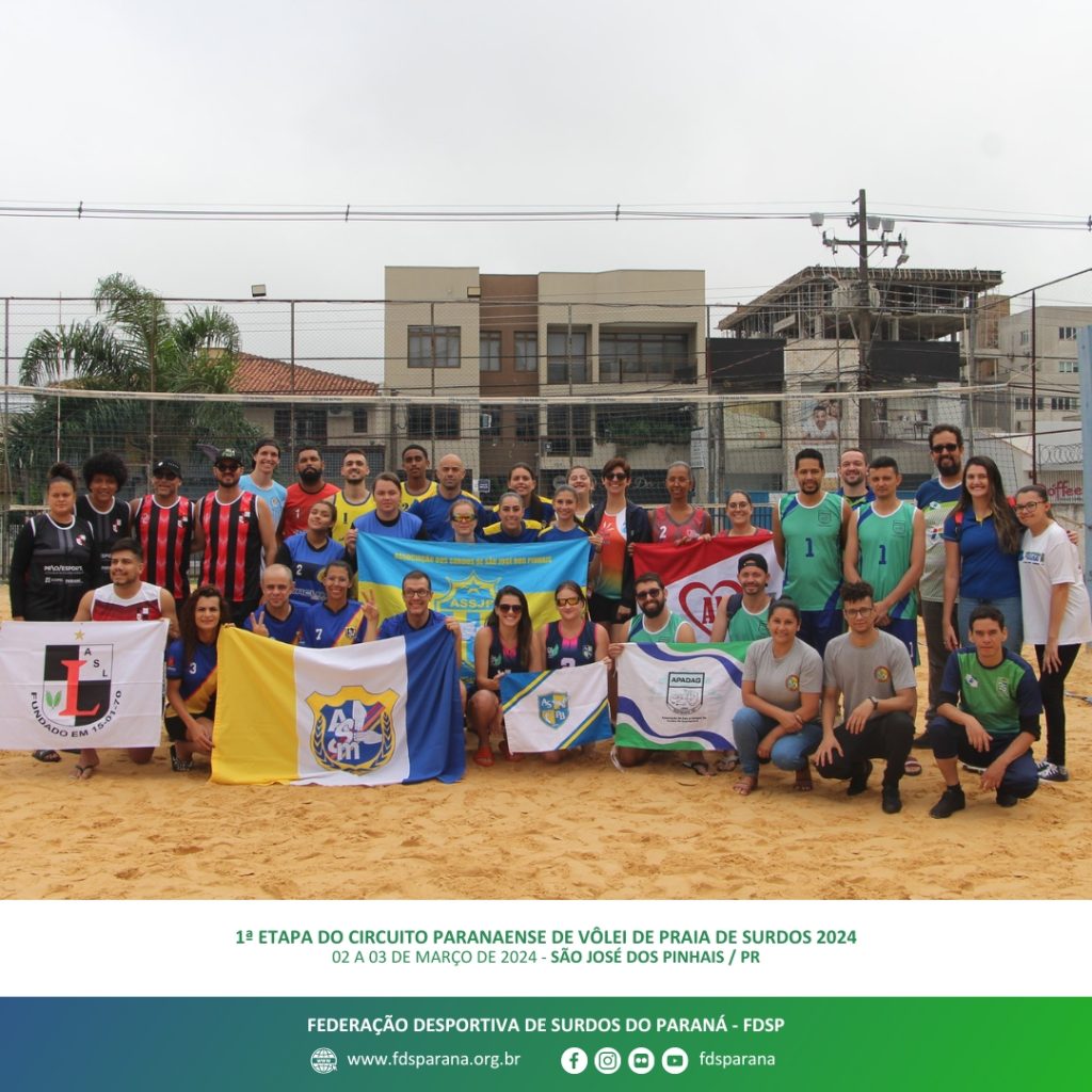 ​Sob realização da FDSP, ocorreu a 1ª Etapa do Circuito Paranaense de Vôlei de Praia de Surdos 2024 no último final de semana (02/03 e 03/03) na cidade de São José dos Pinhais, onde participaram 38 surdoatletas de duas categorias masculina e feminina.