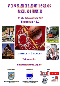 A CBDS promoverá os jogos da Copa Brasil de Basquete para Surdos 2012, nas categorias masculina e feminina, para os dias 02 a 04 de novembro, na cidade de Blumenau - SC, que conta com o apoio da organização da ASBLU/FMD, em parceria com a FCDS.