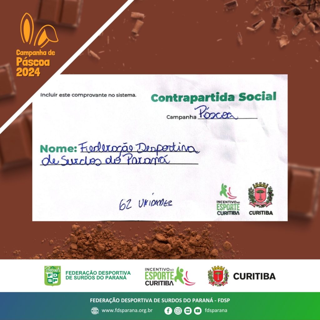 A Federação Desportiva de Surdos do Paraná – FDSP, em conjunto com a Secretaria Municipal do Esporte, Lazer e Juventude – SMELJ/Curitiba, promoveu uma campanha muito especial: a arrecadação de caixas de bombom!