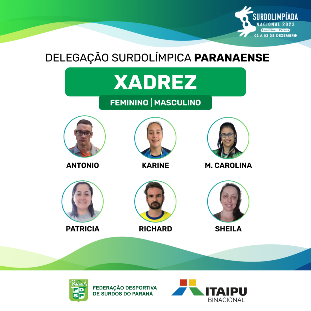 A FDSP apresenta os convocados para representar a Delegação Surdolímpica Paranaense no maior evento nacional promovido pela Confederação Brasileira de Desportos de Surdos (CBDS), a Surdolimpíada Nacional 2023, que acontecerá nos dias 02 e 03 de dezembro de 2023, em Londrina/PR.