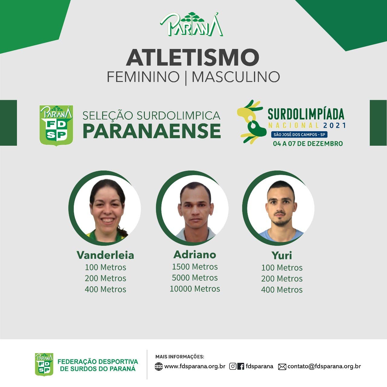 A FDSP apresenta os integrantes confirmados para representar a Delegação Surdolímpica Paranaense no maior evento nacional promovido pela Confederação Brasileira de Desportos de Surdos – CBDS , Surdolimpíada Nacional 2021, que acontecerá nos dias 03 a 07 de dezembro de 2021, na cidade de São José dos Campos/SP.