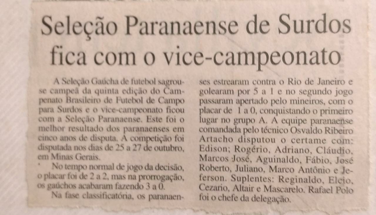 Pela primeira vez, a Seleção Paranaense da FDSP participa em um evento nacional promovido pela CBDS, onde a equipe contou com apoio financeiro para despesas de transporte para participar no evento em referência.